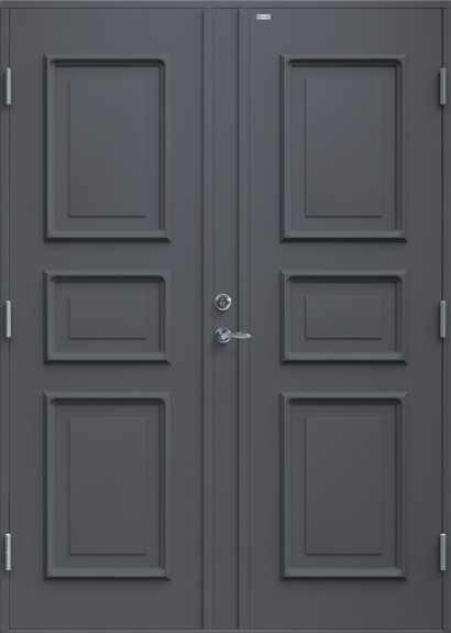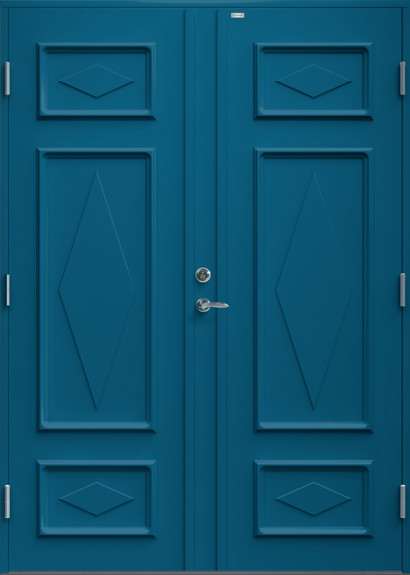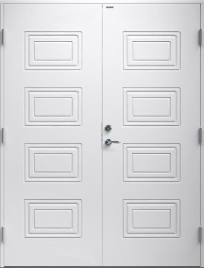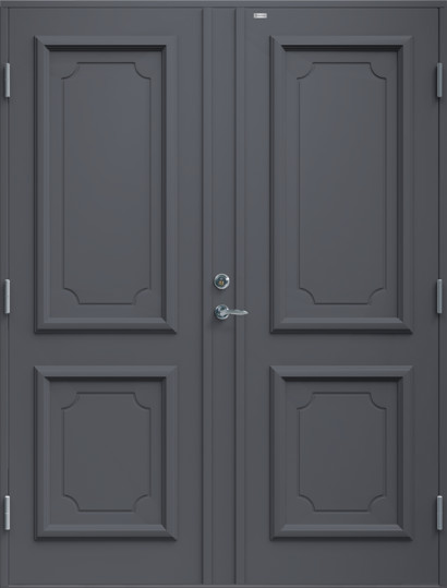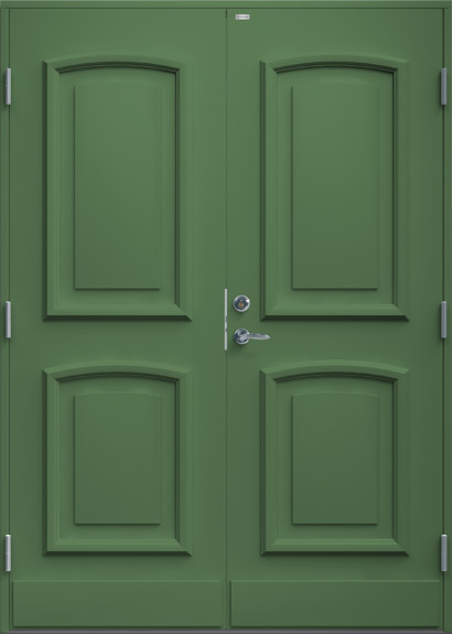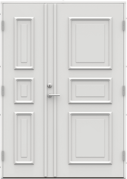 Parytterdörr i klassisk stil med utvändigt listverk.