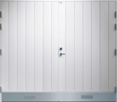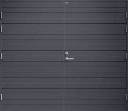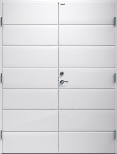 Garagedörr med helt slät yta utan dekor. Finns i valfri kulör.