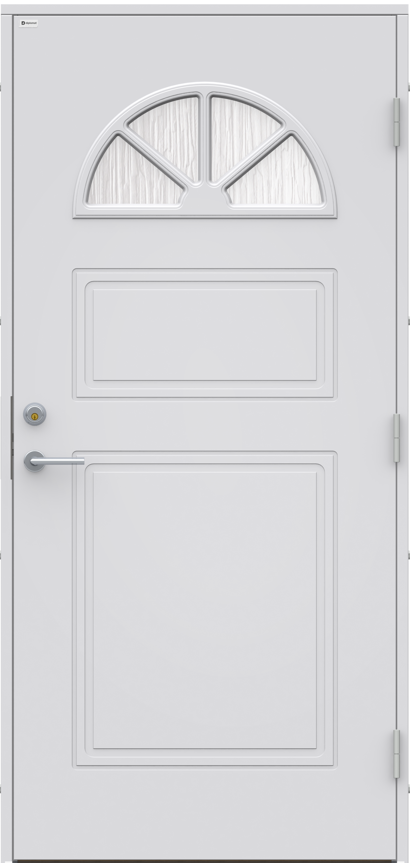 Dekorspårad ytterdörr i traditionell stil som finns i flera utföranden, välj mellan standardvit eller valfri kulör.