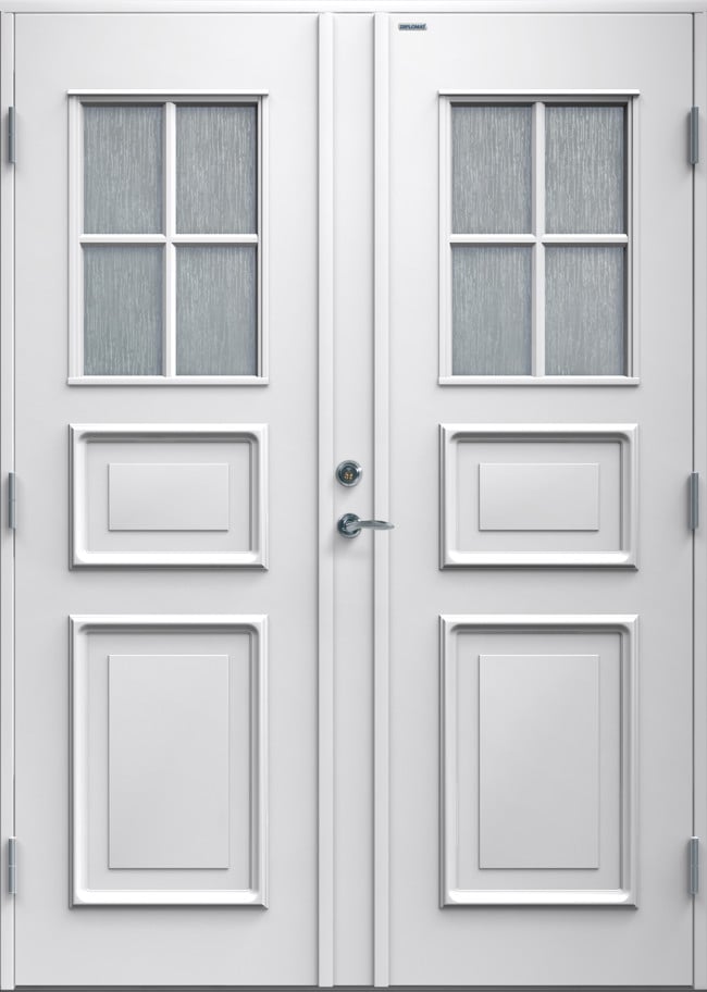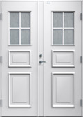 Klassisk parytterdörr med dörrspeglar markerade med lister. Dubbla cotswoldsglas beprydda med dekorspröjs. Välj mellan valfri kulör eller konstteak.