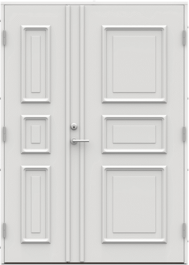 Parytterdörr i klassisk stil dekorerad med listverk och dörrspeglar.