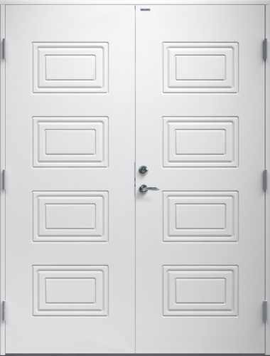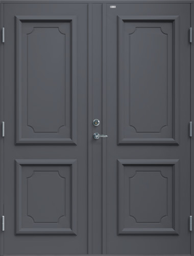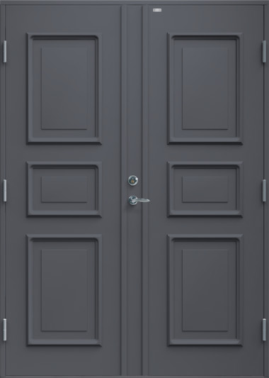 Parytterdörr i traditionell stil med speglar i form av spårfräst dekor.
