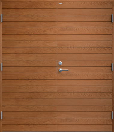 Parytterdörr i modern stil med spårfräst dekor i form av liggande panel. Finns i ek, konstteak eller kulör.