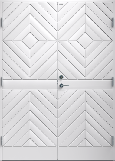 Parytterdörr i traditionell stil med diagonal panel i form av spårfräst dekor. Välj mellan valfri kulör eller furu.
