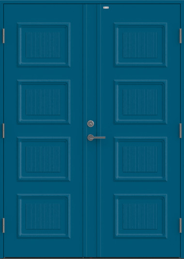 En klassisk ytterdörr med åtta utvändiga speglar med spår och utvändigt listverk. Finns i valfri kulör.